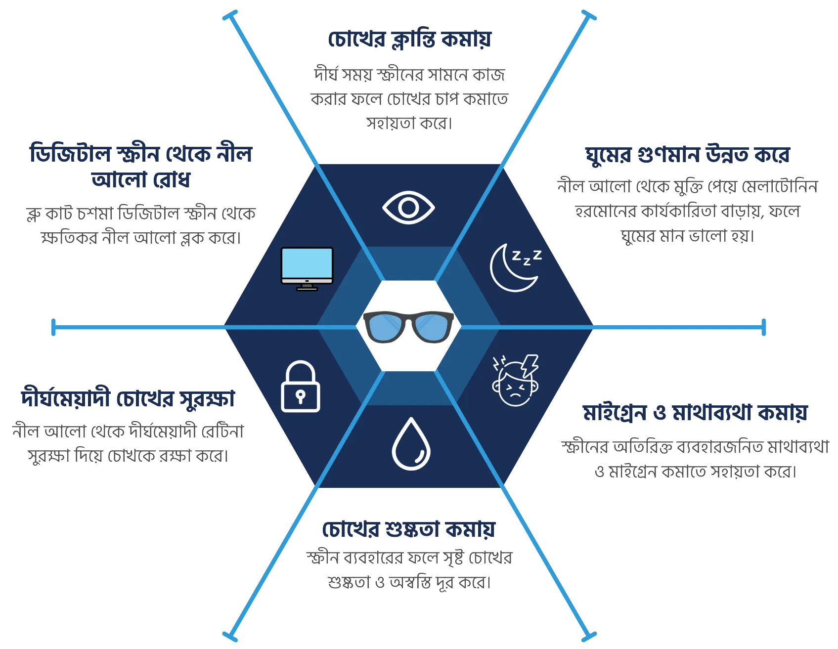 আমরা সরবরাহ করি উচ্চমানের ব্লু কাট চশমা, যা আপনার চোখের সুরক্ষায় সর্বোচ্চ কার্যকর।